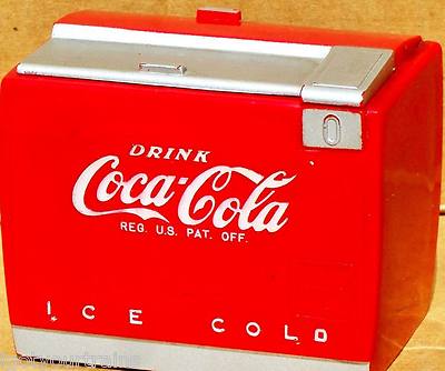 Title (ebay affiliate link): 1950's Coca-Cola Cooler Ice Chest Windup Music Box 3" STILL WORKS COKE