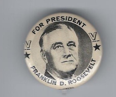 Title (ebay affiliate link): FDR Roosevelt 1.25 inch 1944 photo pin button Democrat World War II Victory RARE