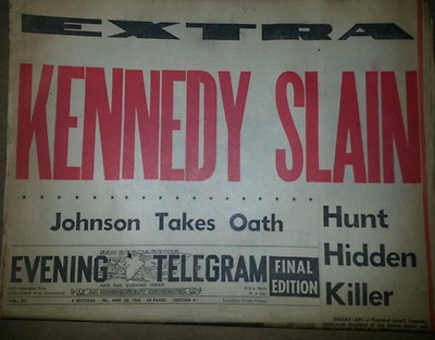 Title (ebay affiliate link): Kennedy Slain San Bernardino Evening Newspaper Nov.22, 1963