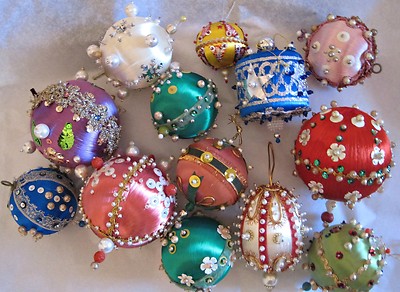 Title (ebay affiliate link): VINTAGE CHRISTMAS SATIN BALL HANDMADE ORNAMENTS BEADED SEQUIN LOT 13
