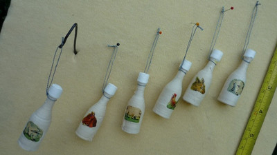 VTG.SIX COTTON BOTTLES CHRISTMAS TREE ORNAMENT(paper animals)