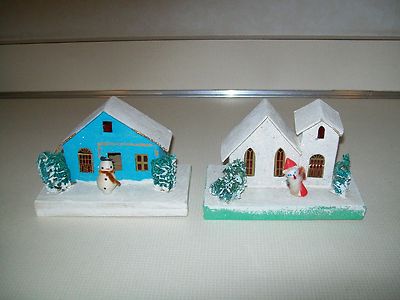 Title (ebay affiliate link): Vintage Cardboard Putz Two Christmas Houses Santa & Tree - Snowman & Tree JAPAN