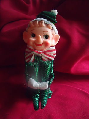 Title (ebay affiliate link): VINTAGE CHRISTMAS ORNAMENT KNEE HUGGER METALIC GREEN ELF/PIXIE/ELVES