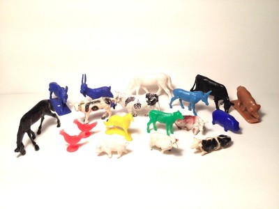 Assorted plastic farm animals fromm different play sets.