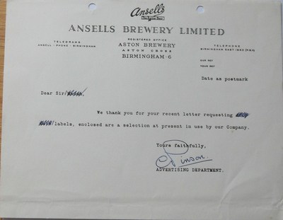 Title (ebay affiliate link): ANSELLS BREWERY1960's Signed Headed Notepaper VINTAGE Beer Labels
