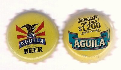 bottle caps beer COLOMBIA used bottle cap beer set of 2 AGUILA