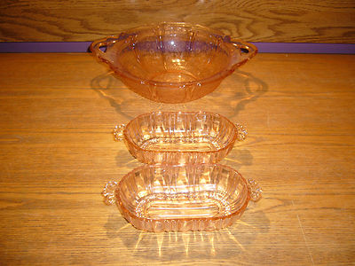 Title (ebay affiliate link): 3 PIECES OF VINTAGE PINK DEPRESSION GLASS CANDY & PICKLE DISHES ANCHOR HOCKING