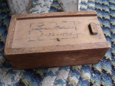 Title (ebay affiliate link): Sweet Primitive Vintage Hand Made Folk Art Wood Box Signed Leone Adair 1943