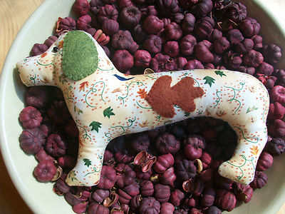 Title (ebay affiliate link): Primitive Fall Leaf Print with applique Dachshund Ornie