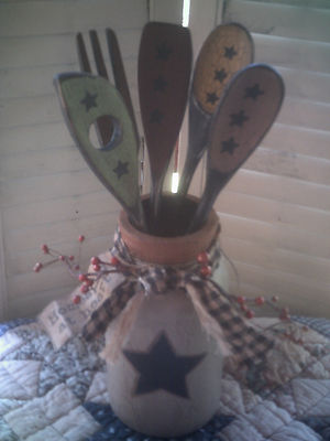 Title (ebay affiliate link): Primitive Decor Wood Utensils & Glass Mason Jar pip berry~County~Farmhouse Decor