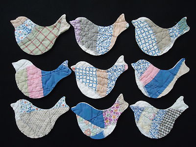 9 PRIMITIVE VTG CUTTER QUILT BIRDS