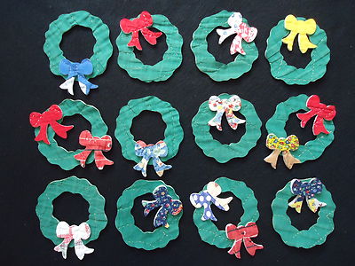 12 VTG CUTTER QUILT CHRISTMAS WREATHS & 15 BOWS - SCRAPBOOKING