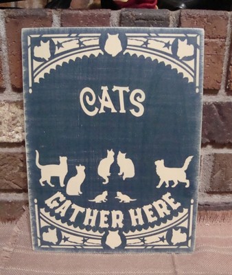 Title (ebay affiliate link): Primitive Style Wood Cat & Kitten Sign "CATS GATHER HERE" Hp Dark Blue