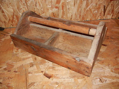 Title (ebay affiliate link): VINTAGE PRIMITVE WOODEN TOTE TOOL BOX GARDEN BOX FARM PARTS BOX