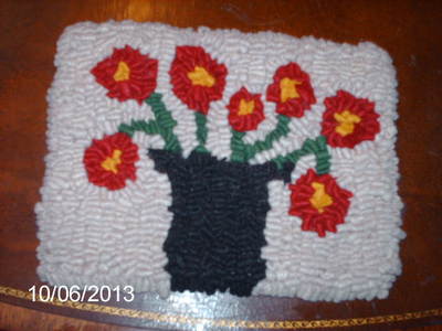Title (ebay affiliate link): HANDMADE PRIMITIVE AMERICANA POT OF FLOWERS HOOKED RUG-PRIM