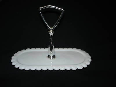 Fenton - White Milk Glass chrome handled Tray