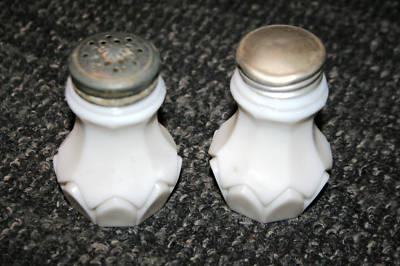 Vintage Milk Glass White Salt & Pepper Shaker Metal Lid