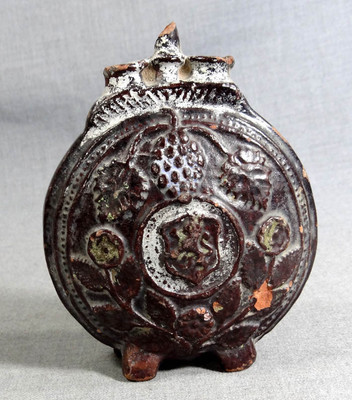 19c.MEDICAL BABY FEEDER NURSING BOTTLE POTTERY FLASK ROYAL LION CREST GRAPE ROSE