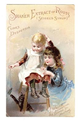 Title (ebay affiliate link): SHAKER EXTRACT of ROOTS DYSPEPSIA & LIVER KIDNEY Quack Trade Card CHILDREN CAT