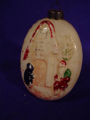 ANTIQUE GERMAN MILK GLASS ORNAMENT SANTA W FEATHER TREE