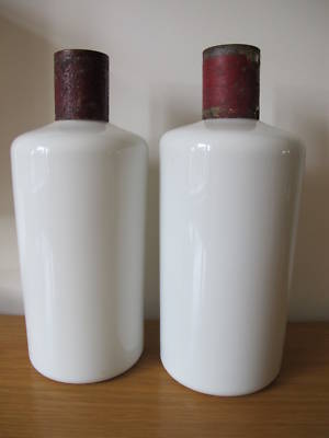 2 ANTIQUE WHITE MILK GLASS APOTHECARY CHEMIST JARS