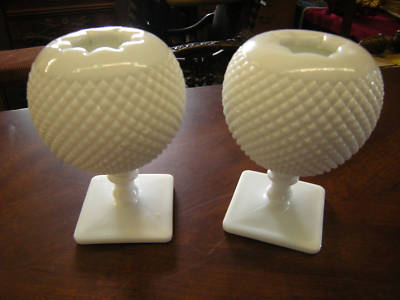 2 Milk Glass Matched Footed Vases Unusual Hobnail
