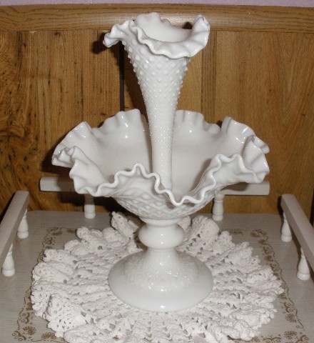 2 PIECE MILK GLASS DIAMOND LACE EPERGNE