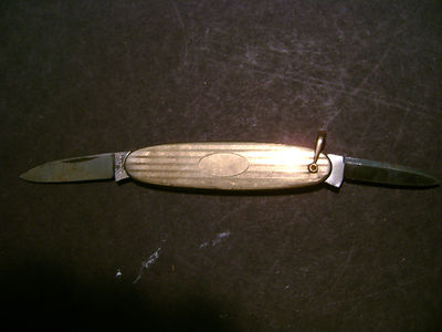 Small,Vintage, 2-Blade, Folding Key Chain Knife, Brass Sides,"Sheffield",England