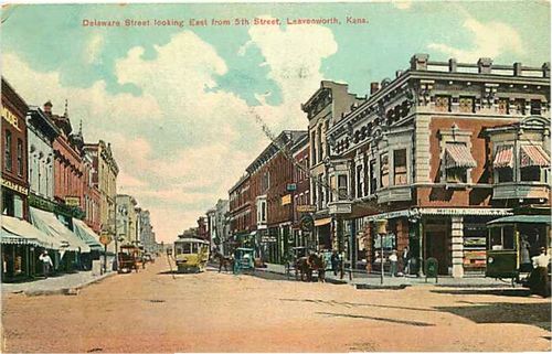 Title (ebay affiliate link): Postcard Street Scene & Street Car Trolley, Leavenworth, Kansas