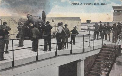 Vintage Postcard Military Firing 12 Inch Rifle Gun Cannon Coast Defense