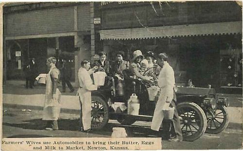 Postcard Farmers' Wives Delivering Butter, Eggs & Milk in Auto, Newton, Kansas