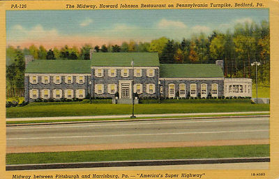 Title (ebay affiliate link): POST CARD LINEN THE MIDWAY HOWARD JOHNSON RESTAURANT BEDFORD PENNSYLVANIA MEALS