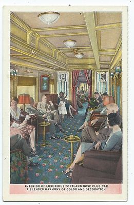 Title (ebay affiliate link): Union Pacific Railroad, Portland Rose Club Car Interior, c1920's