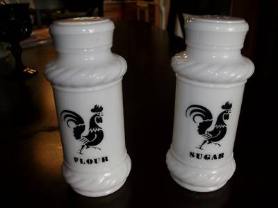 Hazel-Atlas Milk Glass Rooster Sugar & Flour Shakers