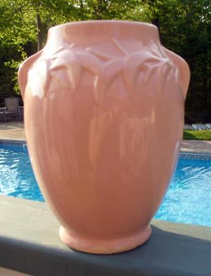 Title (ebay affiliate link): McCoy ~Matte Pale Pink~ LEAVES URN ~VINTAGE 1940's ceramic flower vase!