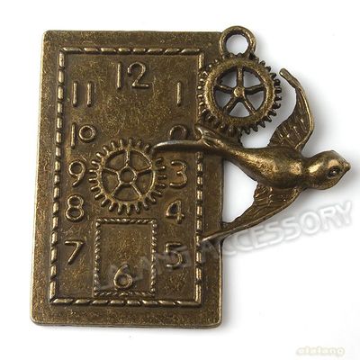 Title (ebay affiliate link): 10pcs ON SALE Swallow and Clock Antique Bronze Alloy Pendants 40x40x3mm 140978