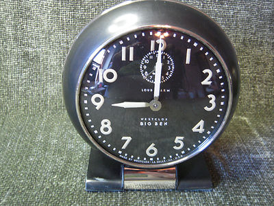 Title (ebay affiliate link): Antique Westclox Art Deco Black and Chrome Big Ben Alarm Clock Westclox Radium