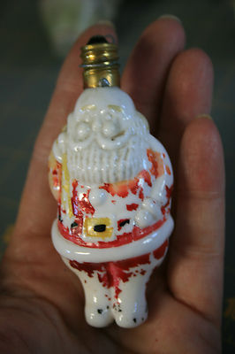 Vintage Christmas Milk Glass Light Bulb Santa