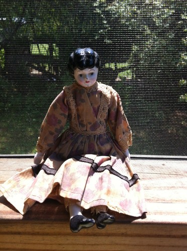 Title (ebay affiliate link): Antique or Very Vintage China Porcelain Doll 7" Victorian Dress