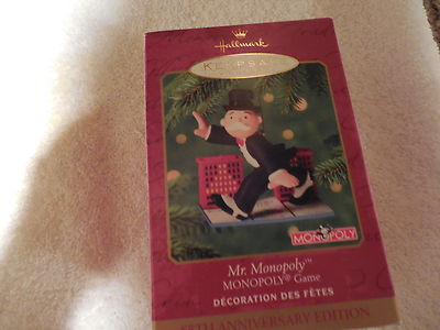 Title (ebay affiliate link): NIB Hallmark Xmas Ornament MR. MONOPOLY MONOPOLY GAME 65th Anniversary Edt. 2000