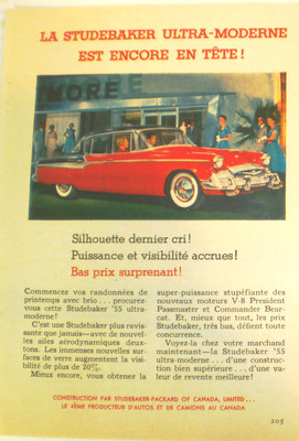 1955 STUDEBAKER CAR ORIGINAL AD IN FRENCH