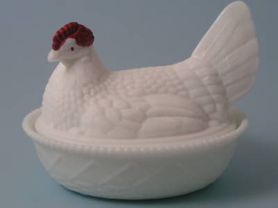 Milk Glass Hen on Nest Candy Dish