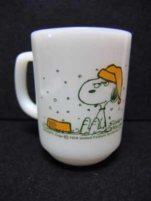 Vintage Snoopy Fire King Milk Glass Coffeee Mug