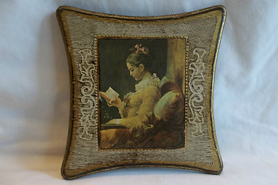 Title (ebay affiliate link): Vtg. Enesco Italian Florentine Fragonard Jenne Fille Lisant Wall Plaque Toleware