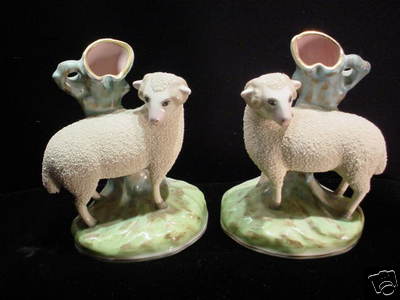 Antique Pair Staffordshire Sheep Figurine As Is