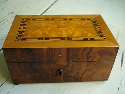 ANTIQUE 19 TH. C. WOODEN HUMIDOR-CIGAR BOX- WALNUT VENEER WITH INLAYS