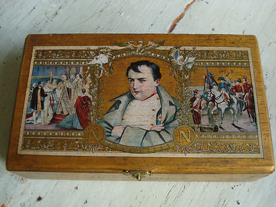 Title (ebay affiliate link): VINTAGE NAPOLEON-CUBAN NAPOLEONES WOODEN CIGAR BOX- DECORATED HINGED LID