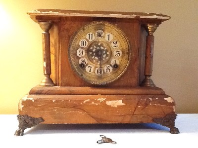 Title (ebay affiliate link): ANTIQUE GILBERT MANTLE CLOCK W/ CHIME KEY & BRASS ACCENTS / GILDED NOT WORKING