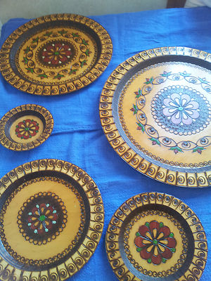 Vintage Polish RZEZBA w DREWNIE Folk Art Wooden Nestling Plates