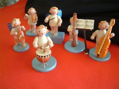 Title (ebay affiliate link): 6 Antique German Hand Painted Wood Angel Figures Playing Musical Instruments CPC